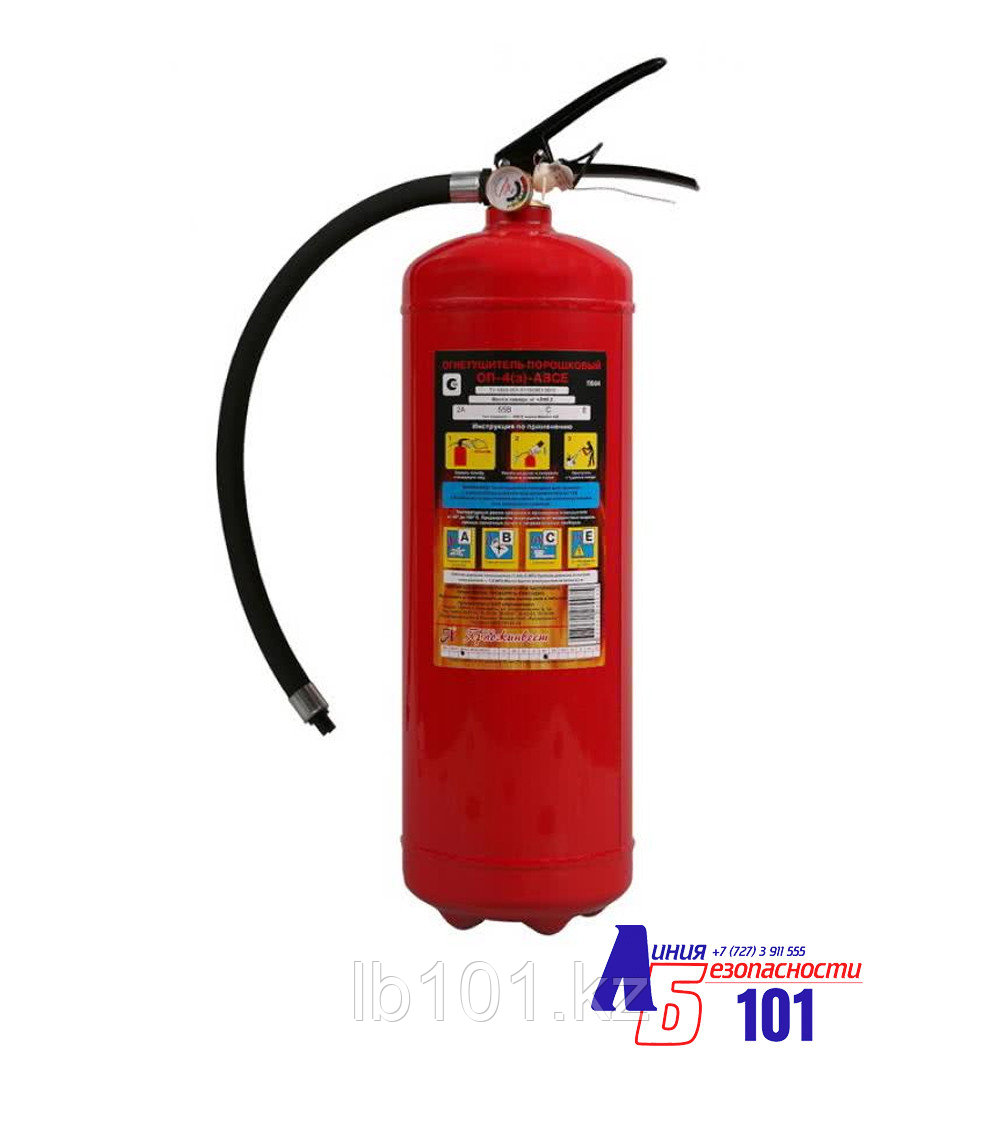 Переносной порошковый огнетушитель ОП-4 для тушения твердых веществ, жидкостей и газов, а также электроустановок под напряжением.